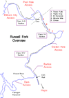 Getting to the Russell Fork can be almost as challenging as running it. Be aware that very large trucks travel these narrow and winding roads. That fancy new Explorer can be just another grease stain on the road if it crosses a tandem coal hauler. Take it easy.